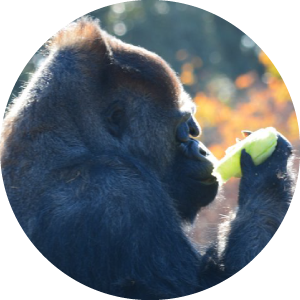 好きな食べ物はゴリラによっても、時期によってもそれぞれです。ゴリラたちは、牧草・枝葉の中では特にソルゴーやクワがお気に入り。いつも食べている野菜の中では、ブロッコリーやキャベツを好んでいるそうです。